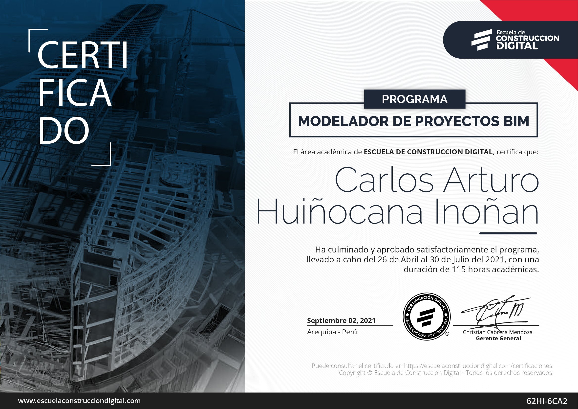 Carlos es un profesional de con un gran dominio de las herramientas CAD, destacó su compromiso, responsabilidad y creatividad en los proyectos en los que participa.